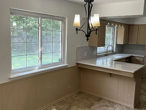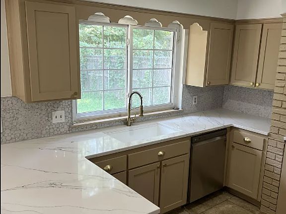 -Discover comfortable suburban living at this charming 4-bedroom, 2-bath home in Tulsa. With over 2,150 sq ft of living space, the house features a cozy fireplace, a kitchen with a convenient island, and tile and vinyl flooring throughout for easy upkeep. Laundry hookups are provided, and the detached garage offers secure parking. Set on a spacious 0.29-acre lot, the brick exterior and courtyard bring classic curb appeal. Built in 1974, it's equipped with forced-air heating and central air. The property is pet-friendly and located in a quiet neighborhood just minutes from local schools, shopping, and parks. This home combines generous space, practical amenities, and a welcoming layout perfect for families or those needing room to spread out.