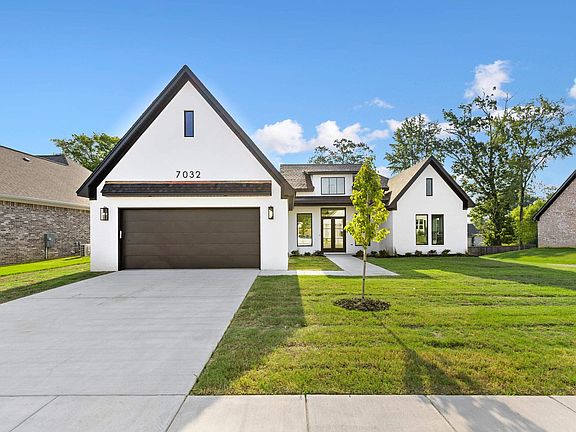 This contemporary gem in The Fields of Hurricane Lake Estates effortlessly combines modern design with luxurious comfort. The home features three generous bedrooms and two elegant bathrooms, anchored by a gourmet kitchen that boasts a large island with quartz countertops, a striking black backsplash, gas range, and stainless steel GE Profile appliances. Expansive windows flood the space with natural light, highlighting the open layout and stylish light fixtures throughout. A beautiful electric fireplace adds a cozy touch to the living area, and a designated office space offers a perfect spot for productivity. The primary suite is a serene retreat, showcasing vaulted ceilings, a spacious walk-in closet, and a spa like bathroom with a walk in shower featuring seamless glass panels and a rain shower head, as well as a free standing tub. The laundry room is a highlight, featuring ample storage, built-ins, and two convenient quartz topped folding tables. Step outside to enjoy a nicely sized back porch, ideal for outdoor dining and relaxation. Additional amenities include a two-car garage and ample living space, making this home perfect for both entertaining and everyday comfort.