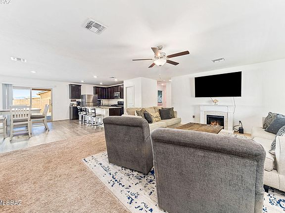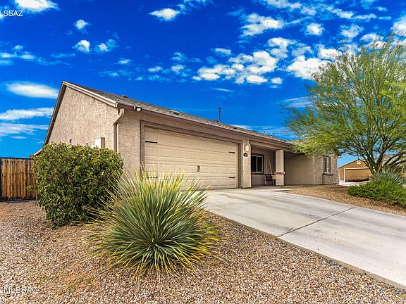 VA Assumable loan! Step into your new home in Southwest Tucson. This spacious 4 bedroom 2 bathroom home has everything you need. An open floorplan features Whirlpool appliances in the kitchen, a large eat-in island that overlooks the dining and living rooms, and a sizeable laundry room. The primary offers a walk -in closet and shower only en-suite he low care landscape includes a covered patio, decorative rock, and a paver patio with gazebo frame- playground included! With nearby shopping, gaming, and dining - this home has it all!