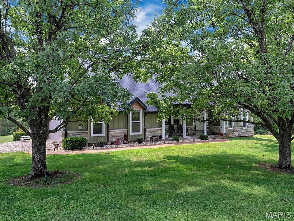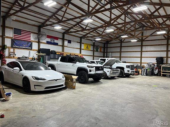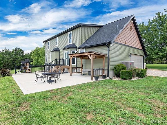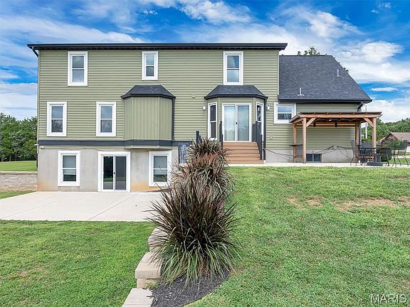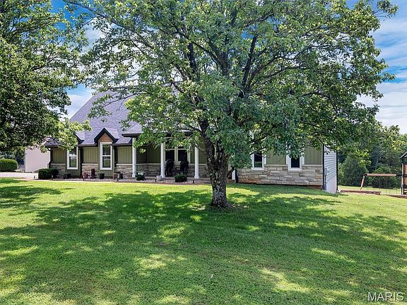 Stunning 5 acre hobbie farm located in the heart of horse country just 30 mins southwest of St. Louis. Outside first: The exterior is dressed in a new roof, siding, windows and stone accents. Low voltage landscape lighting and mulched tree bases add to the stately feel. There is a 40 x 60 HEATED pole barn with 14 foot over head door perfect for the RV, boat or car collection! There is also a chicken coup, fenced horse area, massive garden area, livestock shed, 25 yard small caliber shooting range and plenty of additional outside parking. Don't miss the stone wall accents and fantastic patios! Inside you are greeted by a 2 story entry foyer staircase leading to the 2 upstairs bedrooms and full bath. Rounding out the main floor is the sunk-in living room, separate dining room, kitchen with breakfast room, 1/2 bath, laundry and master bedroom suite with jetted tub and separate shower. The lower level boasts a large secondary living room, a kitchenette with tile backsplash, rough in bath, storage room and what could be a 4th sleeping room! This home is the perfect place to raise a family to have room to spread out and enjoy the simple life away from the noise of the city. Home has many upgrades to the electronics such as smart home features and lighting. Don't miss this one!
