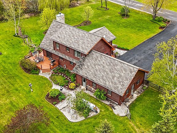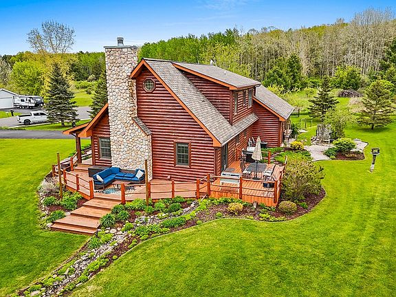 Meticulously Maintained Split-Log Home Near Idlewild Golf Course & Potawatomi State Park! Tucked at the end of a peaceful cul-de-sac, this pristine split-log home is surrounded by a beautifully landscaped perennial yard & features a wraparound deck perfect for relaxing or entertaining. Inside, you'll find a spotless interior with a stunning stone wood-burning fireplace, a chef's kitchen with high-end stainless appliances (Viking gas stove), & remodeled main floor bathroom with a spacious walk-in shower. The basement includes an electric sauna & tons of storage—plus additional storage space above the garage. Updates abound: newer roof, furnace, central air, and more (see update list). 2 lots included (0204700033/0204700034), taxes for both.