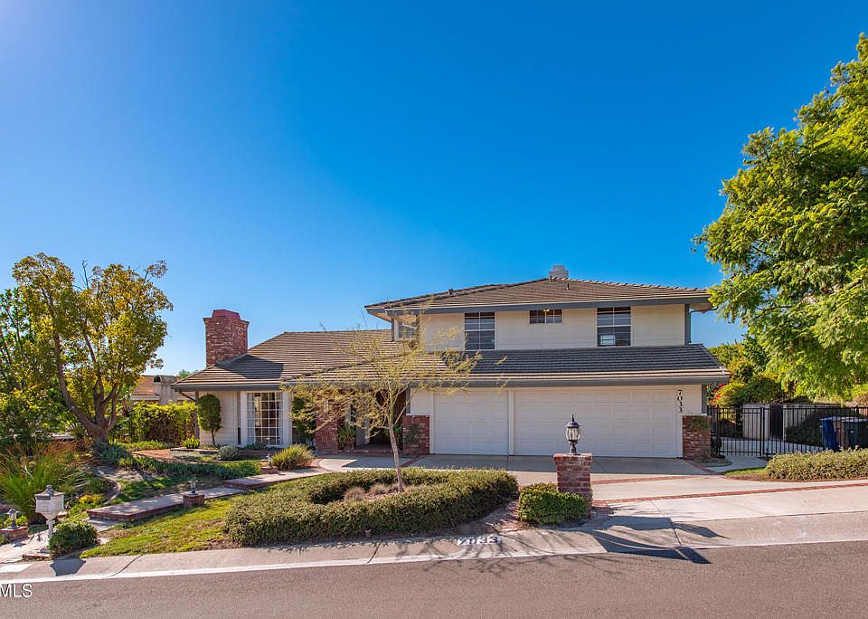Breathtaking mountain views, total privacy, and a resort-style pool set the stage for this stunning 3,605 sq. ft. retreat on a .52 acre lot in one of Camarillo's most coveted neighborhoods. Every detail of this 4-bedroom, 3-bath home was designed for beauty, comfort, and connection.Step inside and you're greeted by soaring coffered ceilings and an open-concept layout that flows effortlessly from spacious living areas to the heart of the home, a chefs kitchen with a large island, perfect for gathering and entertaining. Sunlight fills every corner, highlighting nice finishes and effortless indoor-outdoor living.The bottom level features a private guest/office area, bathroom, and a convenient downstairs laundry room. Upstairs, the primary suite is a true retreat, complete with a peaceful sitting room, fireplace, and private views from the terrace looking over the backyard.Outside, your private paradise awaits, a sparkling resort-style pool, lush landscaping, and room to relax, entertain, or simply take in the view. Come experience this beautiful Camarillo home for yourself with proximity to the 101, schools, shopping, and dining. This home defines Camarillo lifestyle at its finest!
