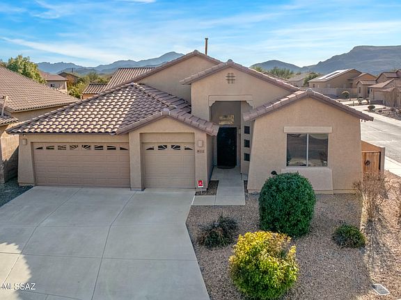 Welcome to your dream home in the highly sought-after community of Continental Reserve! Nestled in a peaceful cul-de-sac, this stunning 4-bedroom, 2-bathroom residence offers the perfect blend of luxury, comfort, and convenience. Step into an inviting open floor plan featuring all hard surface flooring--no carpet throughout. The remodeled primary en suite boasts a walk-in marble-finished shower, a double vanity sink, and a generously sized closet. Enjoy direct access from the primary bedroom to your backyard oasis, where a sparkling Pebble Tec pool and spa await. Designed for entertaining, this home offers two spacious living areas and a beautiful kitchen equipped with stainless steel appliances and abundant cabinetry. The backyard is a true retreat, featuring custom pavers, artificial turf, and a built-in barbecue, perfect for outdoor gatherings. Take advantage of the new energy effect attic through Aeroshield reducing heating & cooling bills contributing less dependency on foreign energy. Not to mention this house as a high performance of air efficiency due to an advance solar fan. The three additional guest bedrooms feature stylish vinyl flooring, providing both durability and elegance. A brand-new double-wide garage door enhances the spacious 3-car garage, which also includes a water softener system and a newer water heater. Located just at the base of Sombrero Peak, this home is minutes from parks, tennis courts, and top-rated local schools. Enjoy easy access to shopping and dining at the Arizona Pavilions Marketplace and the Tucson Premium Outlets, both just across the I-10 freeway. Plus, downtown Tucson is less than 20 minutes away! Don't miss this exceptional opportunity to call this Continental Reserve gem your new home. Schedule your showing today!