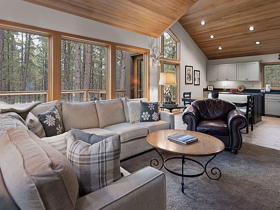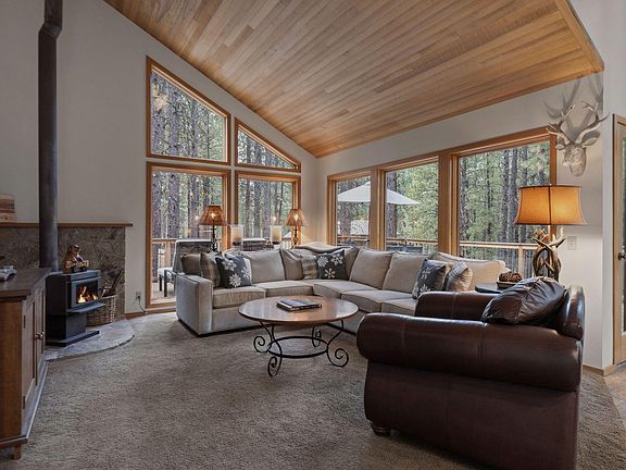 From GM249 there are conveniently easy paths to both Glaze Meadow Golf Shop and Glaze Meadow Rec Center. The home features a floor plan designed for the active Black Butte Ranch lifestyle. Upper level offers an open concept main floor, with 2 primary bedroom suites. Remodeled kitchen that flows into the dining area, and the great room, with a wood stove, and birds-eye views of the natural, serene beauty. The views, including some of the GM 1st fairway and wildlife, continue from the wrap around deck, with choices for different sun exposures and star gazing, The lower level has access from the garage, a convenience for arriving guests. The good sized bonus room, with a covered deck, is inviting to children for indoor and outdoor play areas. Also, it is a comfortable gathering area for adults who like to play, watch important sports events, or just relax. There are 2 additional bedrooms and a full bathroom. Enjoy 2 championship golf courses, tennis/pickleball courts, 6 pools