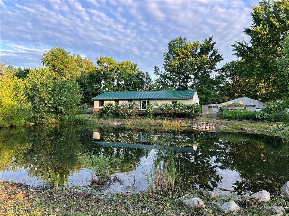 Ranch home overlooking the pond in front yard. Partially wooded. Nice kitchen with dishwasher, range, refrigerator and microwave. Full basement. Wood burner. Outbuilding. The home needs some updating but a great value.