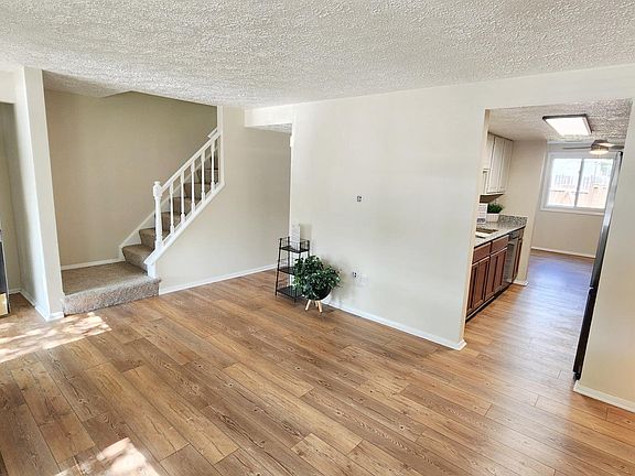 Lovely three bedroom townhome in excellent location with NO CITY TAXES! Solar panel system = lower than average utility costs. New flooring throughout including LVP solid surface flooring on entire main level and in both bathrooms, brand new black stainless steel refrigerator, granite counters and sleek white tiled backsplash, fully fenced backyard with large platform deck, fresh neutral paint, large primary bedroom with custom trim work, walk-in closet, and more. A one year home warranty is available. Don't miss out on this special place to call HOME!