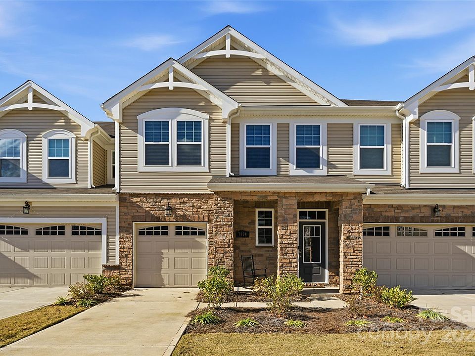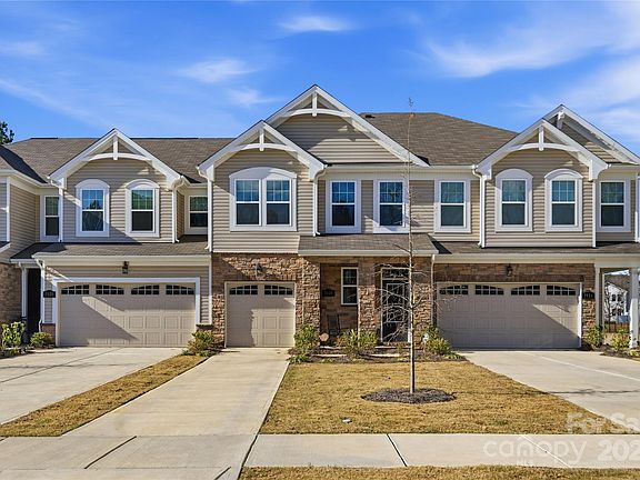 A rare opportunity offering two primary bedrooms, including one conveniently located on the main level. This thoughtfully designed two-story townhome is minutes from Concord Mills and Mallard Creek shopping. The chef’s kitchen features fairy white quartz countertops, island with a breakfast bar, white herringbone mosaic tile backsplash, and light wood-toned luxury vinyl plank flooring. The laundry room is also situated on the main level for added convenience. The heart of the residence is a soaring two-story great room that opens through a sliding glass door to a private patio with tranquil pond views. Upstairs, an oversized loft with a fireplace creates a secondary living space. The upper-level primary suite includes two walk-in closets and a spacious en-suite bath, while the third bedroom is adjacent to another full bath. With exterior and yard maintenance included, this home is ideal for those seeking a low-maintenance, lock-and-go lifestyle. It offers functional luxury in a desirable location, blending comfort with elevated design.