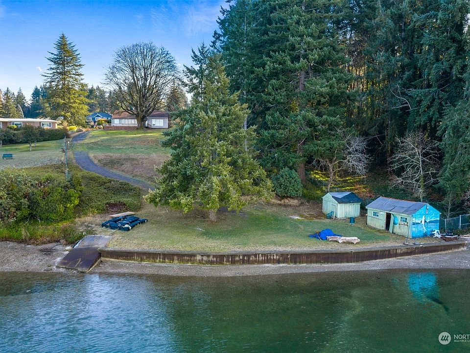 You can always change the home, but you CANNOT change the location---and this is an excellent one! Toward the tip of the ultra-desirable Cooper Point peninsula, this home has superbly private bulkheaded beachfront with a driveway from the home to the water, boat launch, boat house, and grassy entertainment area at water's edge. You cannot see your neighbors nor can they see you! Sandy, pebbly beach. Splendid views of Eld Inlet, the Black Hills, and the Olympics! Large usable lot and a spacious view deck. Enjoy stunning sunsets from this modest home needing cosmetic updating. Single story living with excellent neighboring price support. It's time for you to apply your own personal touches to this jewel of a property!