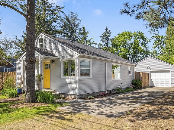 Welcome to this beautifully updated home located in Portland’s desirable Brentwood-Darlington neighborhood. Nestled on a generous ¼-acre lot, this lovingly maintained residence is full of character, modern updates, and room to grow—offering the perfect blend of comfort, style, and functionality. Enter into an inviting open concept living and dining area. The space is filled with natural light with an abundance of windows, and gleaming hardwood floors add a classic touch. Recessed lighting provides a clean, modern aesthetic, complementing the 2019 updates to the plumbing and electrical systems. Flow seamlessly into the gorgeous modern kitchen, where quartz countertops, a custom tile backsplash, and sleek stainless steel appliances create an elevated cooking experience. This thoughtful layout makes entertaining and everyday living easy and efficient. Featuring two bedrooms and one beautifully renovated bathroom, all conveniently located on a single level—ideal for accessibility and ease of movement. The bathroom includes a washer and dryer, saving space and offering added convenience. Outside, the fully fenced backyard is a gardener’s dream and a true urban oasis. Enjoy fruit from the cherry tree and a fig tree. Harvest your own golden raspberries from an established patch, along with newly added red raspberries, blueberries, and strawberries. Two frontier elms and an ornamental cherry tree add to the beauty. A large detached garage offers endless possibilities. Whether you need additional storage, a workshop, an art studio, or even want to explore ADU potential—there’s plenty of space to create whatever suits your lifestyle. The private patio is perfect for summer BBQs or simply enjoying the tranquility of your backyard. Garden beds provide room to grow your favorite flowers or veggies, making this space as productive as it is peaceful. Located in a quiet, friendly neighborhood, you’ll be close to shopping, parks, schools, and more. This cutie has it all! [Home Energy Score = 4. HES Report at https://rpt.greenbuildingregistry.com/hes/OR10124990]