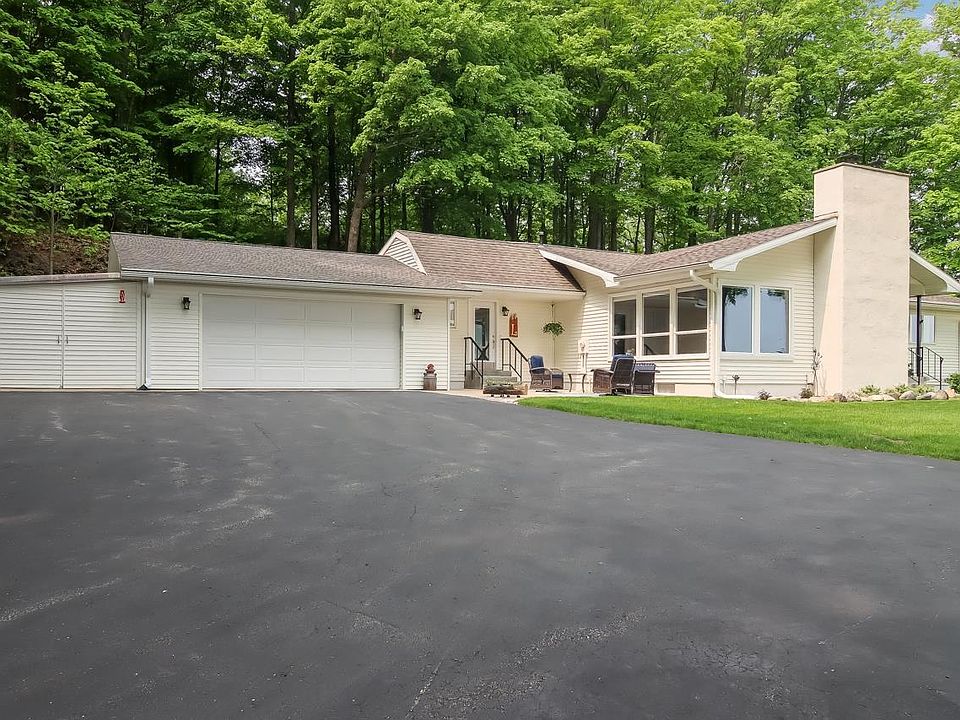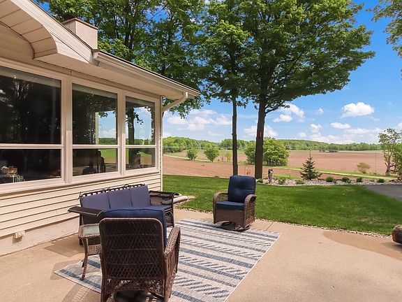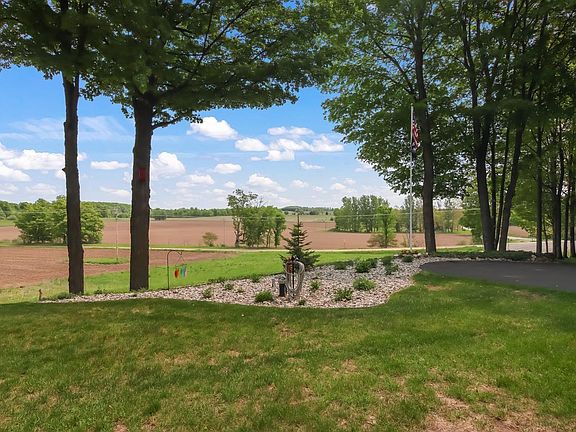 Enjoying this peaceful private setting with ultimate countryside views from this ranch home on 3 acres is a daily inspiration! Main floor living with an open layout, roomy living room w/gas FP, main floor primary suite, lots of quality wood flooring, comfy kitchen/dining area, large mud room/breeze way, user friendly lower level, heated attached 2 car garage with additional 3rd stall storage, paved county rd & driveway, 2 storage/garden sheds. No HOA here! Add that pole barn if you would like and come enjoy inspiring country living!