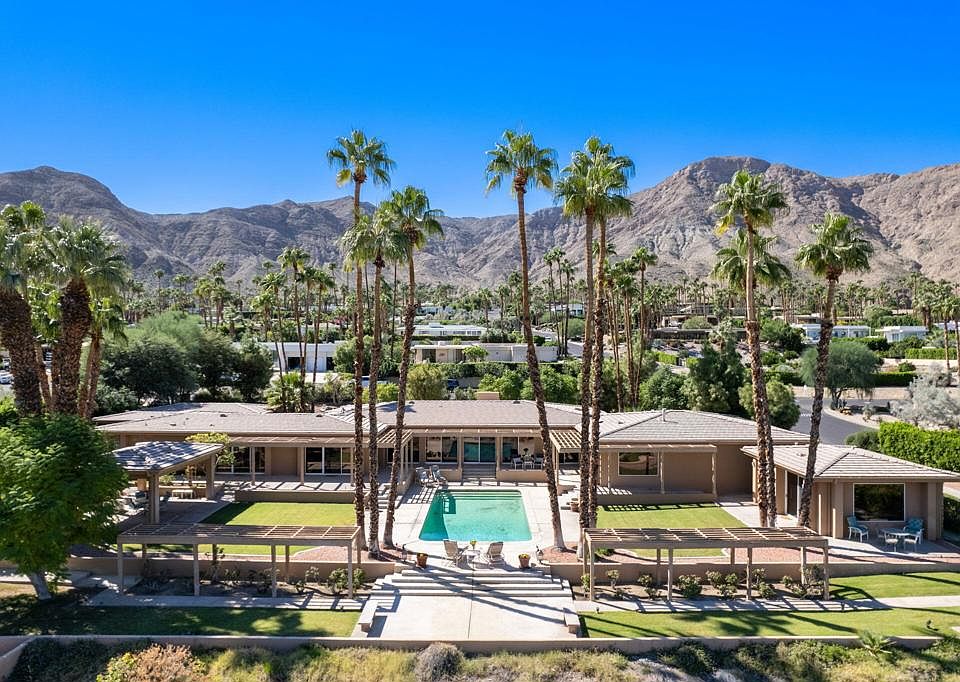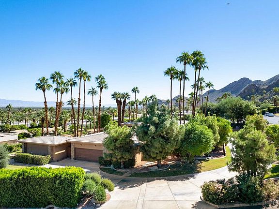 The guard-gated community of Thunderbird Heights represents prestige, elegance and exclusivity. Situated on a corner lot within the enclave, this beautiful estate embodies all those characteristics and more. With nearly an acre of flat land, the home's 5,500 SqFt of living space is perfectly sited on the lot to take advantage of the panoramic views of the Coachella Valley. Built in 1967, the main residence features three bedrooms, three bathrooms and a large office/den with custom built-ins and two walls of glass. The primary suite includes an oversized bedroom with ample space for a sitting area, a bathroom which features a large jacuzzi tub, steam shower, dual vanities & sinks, and two spacious closets. Almost all living areas capture valley views with sliding glass doors creating true indoor/outdoor desert living with access to private patios and backyard decks. The chef's kitchen comes complete with Thermador stainless steel appliances and direct access to the formal dining room. The detached guest house has a separate gated entrance from the motor court and includes a kitchenette, full bathroom and even more amazing views. The backyard is a true entertainer's dream with covered verandas, a detached dining loggia, swimming pool, separate spa, an outdoor shower, and mature landscaping including citrus trees and a rose garden. The wrap-around motor court is perfect with three covered stalls for guests! Trophy location, breathtaking views, 70350 Pecos Rd has it all!