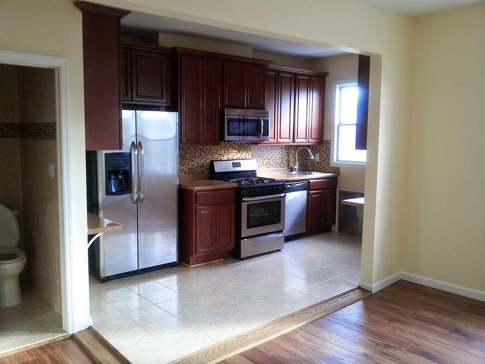 Fully renovated 3 bedroom apartment on 2nd floor of quiet 2-family home. 1 room can be used as an WFH office or bedroom. Fantastic condition, with hardwood bamboo floors, new bathroom and kitchen. All appliances including a dishwasher. Open concept kitchen living and dining area. 1 block walk to NYC bus, Express Bus into NYC, PS 119 and houses of worship. Owner pays water and heat. Renter pays electric and cooking gas. NO SMOKING OR PETS (of any kind non-negotiable)