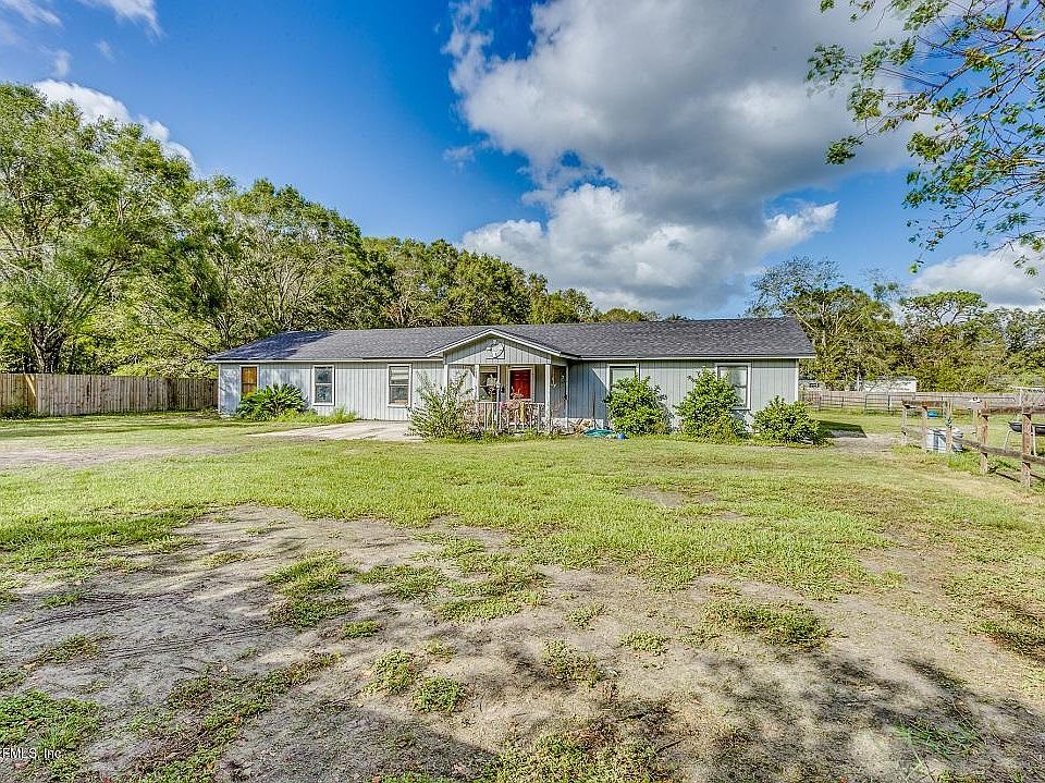 Private country living in the city !! Just under 1 acre of property so bring your animals. Fenced paddock for your horse! 4 Bedroom 2 full bath 1560 sq ft home with long private drive and home sits off the road for extra privacy. Huge eat-in kitchen with granite counters. Spacious family room and all 4 bedrooms have plenty of space. Master bedroom with private master bath. Screened porch and 2 car garage. Lots of room on this lot for animals, cars or even put in a pool !! If you are looking for privacy and country living - don't pass on this opportunity. Property is being sold as is and the seller will not make any upgrades to carpet or painting. Close to shopping, restaurants and 295. Welcome Home !!