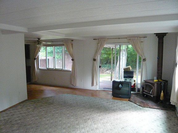 Spacious 2 bedroom, 2 full bath manufactured home on owned land with easy access to I-5. Interior features include eat-in kitchen, formal dining area with built-ins, large living room with wood burning stove, and master suite with huge walk-in closet and en-suite bath. Covered parking for 3 cars, detached shop, and RV parking. Partially fenced and flat yard area too!