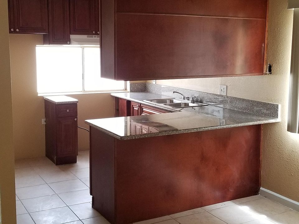 This is a great 1 bed 1 bath upstairs unit in the heart of Whittier! Newly renovated bathroom, the kitchen has granite counter tops, with a stainless steel sink. Tile floors throughout the unit. Laundry is on-site. Water and trash are paid by landlord. Located near schools freeways, and shopping. This unit won't last! Rent : 1600/month, plus security deposit. One year lease. Pictures are from a similar unit and may not be exact. Please call/text to schedule a viewing for this week. One year lease.