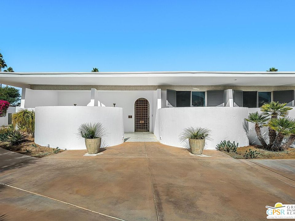 A rare and extraordinary offering designed in 1957 by renowned architects Henry Eggers & Walter Wilkman for Thomas B. Davis, White Shadows stands as one of the desert's most revered architectural masterpieces in Thunderbird Heights. This Moroccan-influenced villa is a timeless study in elegance and sophistication. Set behind private gates on an elevated acre, the estate boasts panoramic views of the valley floor and surrounding mountains. A sun-drenched courtyard, highlighted by a striking fountain, serves as the home's dramatic centerpiece, seamlessly blending indoor and outdoor living. Flowing Carrera marble extends from the courtyard through expansive living areas and out to the shimmering tiled pool, creating an unparalleled sense of continuity and refinement. The interiors are grand yet intimately connected to their surroundings walls of glass, and exquisite custom details. Notable among them are the walnut-screened doors. T.H. Robsjohn-Gibbings collaborated on the home's distinctive design, adding a layer of artisanal luxury. The main residence offers four spacious bedrooms including two serene guest suites that open directly to the courtyard. A separate three-bedroom guesthouse and a one-bedroom caretaker's studio provide additional accommodations, perfect for hosting family and friends while ensuring privacy. White Shadows is not only a piece of architectural history but also a rare opportunity for modern living with the benefits of the Mills Act designation, offering substantial property tax savings. This is a once-in-a-lifetime chance to own an iconic estate where historic modernism meets timeless sophistication, all set against the breathtaking backdrop of the desert landscape.