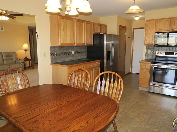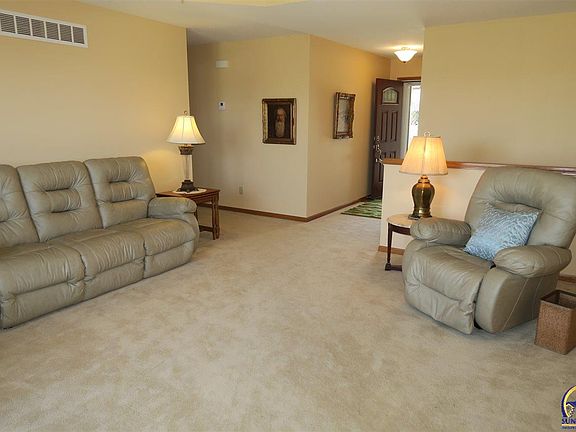Washburn Rural district walkout ranch in fine condition. A real front porch, a beautiful front door, move-in-ready neutral decor throughout this popular floor plan. 1st floor laundry. Over-sized basement bedroom windows and large closets make extra nice space. A sweet rec room with gas fireplace. Two more finished basement rooms without daylight for your creative ideas and uses. A high deck (posts upgraded for stability) on the shady North side of the house. Buried utilities. Nice.