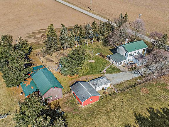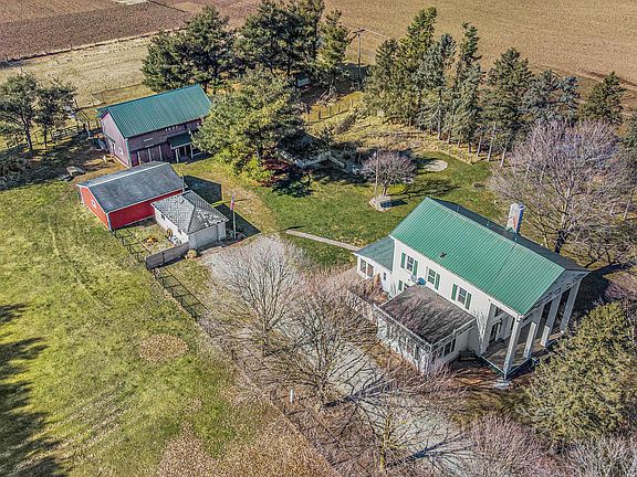 Calling all homesteaders, gardeners, & horse lovers! A rare opportunity to own your dream Hobby Farm retreat on 5.9 acres of countryside! A 30x65 barn boasts a tack room, 4 stalls, water, & electrical service. Surrounded by fenced pastures, a 12'x16' shed, 50'x55' garden, hay fields, a grape arbor, & perennial flowers! The oversized 2-car garage (in addition to 1-car garage) is a woodworker's dream, w/built-in workbenches & ample electrical outlets. Unwind in the private outdoor soaking tub after a day of tending to your farm. Full covered porch, formal foyer, fireplace, wood floors, & French doors lend to the character of the home w/heritage dating to the mid-1800s. The living room flows into the eat-in kitchen w/stainless steel appliances & walk-in pantry. Convenient main floor laundry, 1/2 bath, & large sunroom. The family room has built-in shelving & abundant natural light. Lots of space to customize to your exact needs. Convenient to Elkhart, Edwardsburg, toll road, & US12