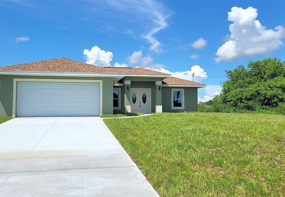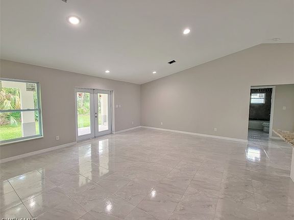No need to wait 6 months for your new home to be finished when you can get right into this beautiful new construction home that is almost completed! This home features ceramic tile throughout, island kitchen with granite counter-tops, and a stainless-steel kitchen appliance package, large laundry room with a pantry cathedral ceiling, recessed lighting, impact windows and doors including the garage door. It also features a large master suite with dual sinks and a huge walk-in closet. The entry is covered and tiled as is the spacious lanai. This home is also located on a spacious greenbelt. Close to schools, shopping, parks and Florida Southwestern State College. NOT IN A FLOOD ZONE PER CURRENT FEMA FLOOD MAP. It also comes with a full builder's warranty.