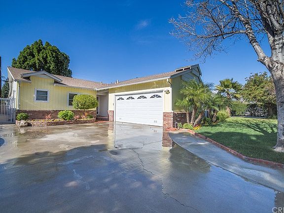 This stunningly remodeled home is nestled on a quiet tree-lined street and the owner spared no expense on its many upgrades. Its new manicured landscaping enhances its eye-catching curb appeal. A flowing and freshly painted open concept floor plan that is in "MOVE-IN-CONDITION" The spacious living room has recessed lighting and beautifully refinished hardwood flooring. The family's cook will truly appreciate the upgraded kitchen's abundant cabinets with pull out drawers, dual basin sink, granite counters with full back-splash, ADVANTIUM~ microwave/oven, built-in appliances, sit down breakfast nook, plus the convenience of the large adjoining formal dining room with lighted ceiling fan. Fittingly adjacent to the kitchen is the huge 24' x 13' enclosed patio with its new carpeting, vaulted wood-beamed ceiling, warm knotty pine paneling, wall-to-wall windows and direct backyard access. All 3 bedrooms have ample closets and lighted ceiling fans. 2 nicely upgraded bathrooms. Energy efficient dual pane MILGARD~ windows, with tilt inward feature which makes it easy to clean the exterior glass. Central heat & air. Functionally located laundry. You're going to spend countless hours enjoying the backyard's beautiful landscaping, mature shade tree, and its large ou