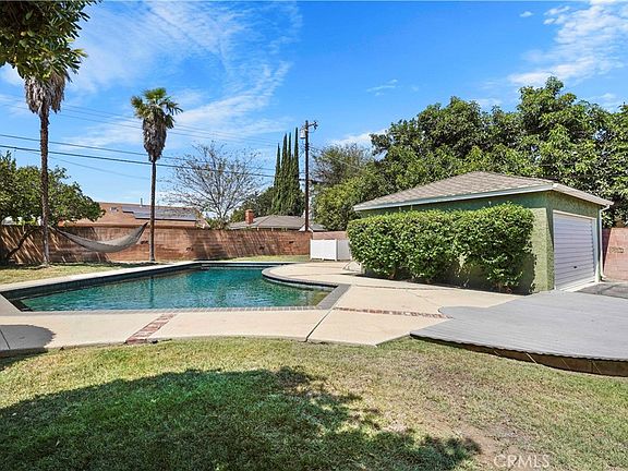 While mostly original, the property has been lovingly maintained and features thoughtful updates, including fresh interior and exterior paint, a sparkling PebbleTec pool perfect for relaxing or entertaining, and a detached garage that has buyers buzzing with potential for a future ADU conversion. Step outside to a lush backyard oasis featuring mature fruit trees—including orange, white grapefruit, and pomegranate—offering both beauty and fresh produce for your enjoyment.