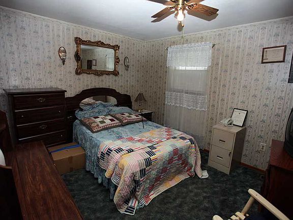 Well constructed and maintained brick ranch with 1st floor bedrooms and bath. Living room with propane gas log fireplace. Side board in living room stays. Over sized downstairs bath. Dining room has side board - great for additional storage. *Upstairs heated with elect BB heat - no AC. 2 walk-in closets in upstairs hall. New carpet in 1st floor bedrooms. New vinyl in kitchen & dining. Covered front porch. New AC compressor in '98. Level lot - off street parking and good back yard with building. Taxes listed are on Homestead Reduction. Normal taxes would be $1320.10 Bedrooms 3 & 4 in room size section are located upstairs. Lot size per tax cards.