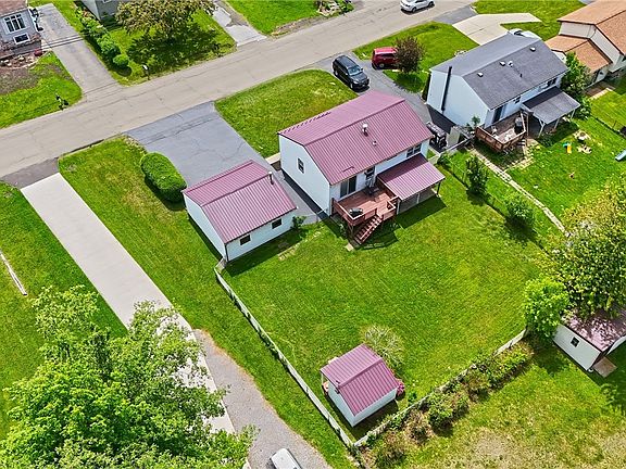 Move-in ready and full of updates, this spacious 4-bedroom, 2-bath home with deeded beach rights sits on a large, beautifully maintained lot. The exterior boasts low-maintenance vinyl siding, a newly sealed blacktop driveway with parking for up to six cars, a 2.5-car detached garage, and durable 50-year metal roofs on the house, garage, and Amish-built shed. Inside, you'll find a bright and inviting living room with hardwood floors and plenty of natural light, an eat-in kitchen with Corian countertops and included appliances (refrigerator, stove, and dishwasher), plus sliding glass doors that open onto a large back deck—perfect for entertaining. Upstairs, there are three generously sized bedrooms with ample closet space and an updated full bath featuring a new tub enclosure and a glass block window. The lower level offers excellent in-law potential, with its own cozy family room, a second eating area with a sink and extra fridge, a spacious fourth bedroom with a built-in desk and double closet, a separate laundry room, and a second full bath with a walk-in shower—providing privacy and function for extended family or guests.