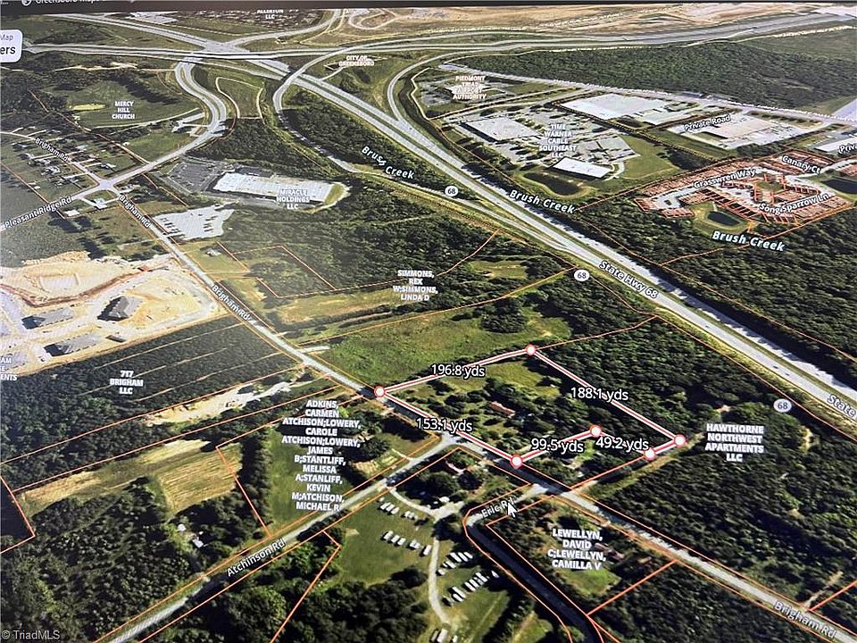 Excellent Investment Opportunity! 5.68 acres just inside Greensboro City limits. Easy access to major thoroughfares and PTI airport. Approximately 457 ft of road frontage. Site is currently zoned CD-LI. However, the parcel is adjacent to newly built apartments with potentially more to begin construction in the near future. Public water on site (fire hydrant on road) and sewer is near (contact City of Greensboro for more specifics). Additional features currently on site: 1985 brick ranch style home (connected to private well/septic) with 2 car garage, storage buildings and detached carport.