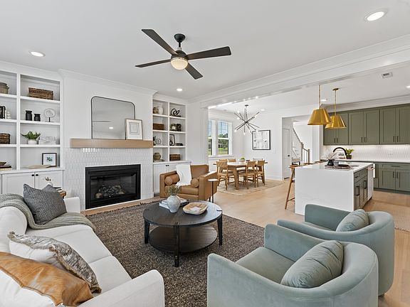 Move in Ready, CONTRIBUTION TOWARDS CLOSING COSTS and MUST SEE TO BELIEVE! Make the Hibiscus by Legacy South YOUR new refuge in 2025. The unbelievable finishes include stunning built ins surrounding a gorgeous fireplace in the open living room. Modern light fixtures adorn the kitchen island and dining area, and truly spotlights the details of the kitchen such as the contrast of the modern green cabinetry, black fixtures and white tile backsplash over the gas stove. Downstairs also features a spacious pantry, mud room, 1/2 bath, and office with custom shelving. Step outside to the large covered porch overlooking a beautifully landscaped, easy maintenance back yard. Upstairs, you will walk into a restful haven with 3 well laid out bedrooms off the large and versatile loft. The primary suite boasts a large accent wall, highlighted by the natural light, and a full bathroom with double vanities and tiled walk-in shower.
