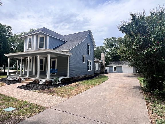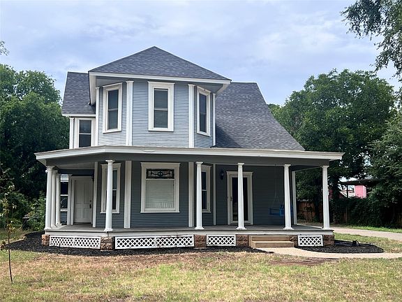 Outstanding opportunity to own a piece of history in Graham! This vintage Victorian home is ready for a new owner to bring it back to life. Ideally located just one block off Graham's historical area near the downtown square, this beautiful home could be used as a full time residence or as potential short term rental. The inviting wrap-a-round front porch opens into the entry foyer and staircase. Special features included on the first floor include a front parlor or living room, a study or office room, a primary bedroom with ensuite bathroom, a formal dining room, a fairly recently updated kitchen with breakfast nook, and a large 20' X 20' living room with a WBFP that was added in 1960. French doors open to the decked back porch and yard. The second floor boast three large bedrooms and bathroom. The separate single vehicle garage includes the potential of a one bedroom, one bath guest suite. The large yard with an automatic sprinkler system features mature shade trees and includes a secluded smaller backyard are with a privacy fence within the larger yard. Aware that this home needs some TLC to restore it to its past charming potential, the motivated seller has priced it to sell AS IS at well below the current Young CAD market tax value. Although Young CAD district shows the house as being built in 1960, the actual date of its construction is much older and it is part of the historical era of the downtown area.
