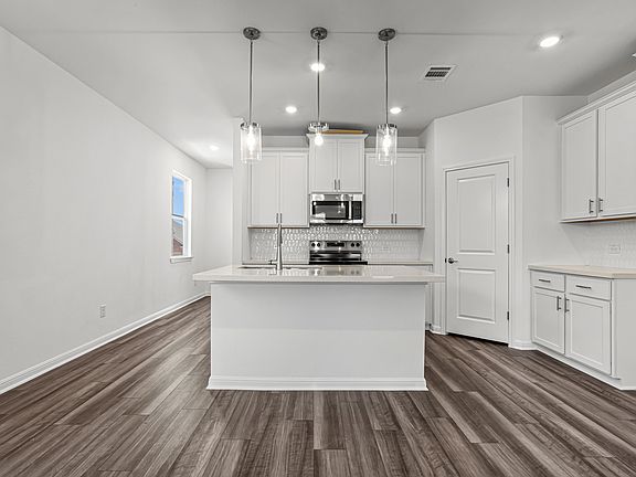 Welcome to this inviting home featuring a charming porched entry and a handy coat closet right at the front. The kitchen seamlessly connects to the dining and great room, making it ideal for entertaining friends and family. Cook with flair in a modern kitchen equipped with stainless steel appliances, a kitchen island with a single-basin sink, and a corner walk-in pantry. The first-floor primary suite provides a private retreat with a spacious walk-in closet, a large shower, dual vanities, and dedicated linen storage. For added convenience, a powder bath and a laundry room with shelving and extra storage space are also located on the first floor. Structural options added include: 12" pop-up ceiling in gathering room and primary suite and covered patio. MLS#3428685
