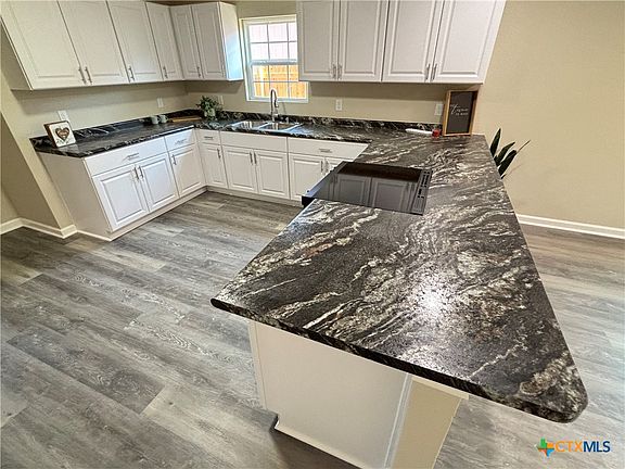 Step into this newly built 3 bedroom 2 bath home thoughtfully crafted for style and functionality. Set on a durable slab foundation, this home includes a single car garage with washer/dryer hookups and a convenient side exterior door. The welcoming front porch makes a great first impression, leading to an entry door highlighted by a distinctive Lone Star glass insert. The spacious kitchen is equipped with a sleek smooth top range, ample cabinetry, a double stainless sink, and a breakfast bar ideal for casual meals. Convenient hall bath has a single vanity and a tiled tub/shower combo. The roomy master suite provides a relaxing retreat with its private bath, featuring dual vessel sinks and a tiled tub/shower combo. Two additional bedrooms add versatility for family, guests, or a home office.