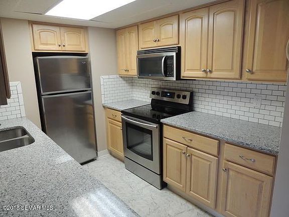Rental certificate in place. Location is key. Completely updated kitchen, all new appliances, tile, under cabinet lighting, flooring throughout condo. Walking distance to Downtown. Easy affordable living in secure 2nd level. Laundry in unit, snow, garbage and lawn is taken care of for you. Low association fees of $150.00.