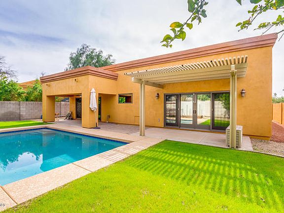 Location and open concept! See map in photos. Priced UNDER APPRAISAL. In the heart of Phoenix; dine at the 7th St. restaurants; shop at AJ's, Whole Foods, Trader Joe's and the North Central Phoenix farmer's market; be close to freeways and to the airport. No HOA. Wonderful family home with huge split master suite and 9x14 walk-in closet. Two of the three second bedrooms are en suites. Fourth bedroom works great as an office. Custom touches throughout, including solid wood doors, two-way gas fireplace, granite counters, gas cook top, and large jetted tub. Extra height garage with floor-to-ceiling storage. Pebble Tech play pool, grass, raised plant beds, two covered patios, fruit trees and grape vines. Natural gas supply for outdoor grill. North-south exposure. NEW ROOF in August.