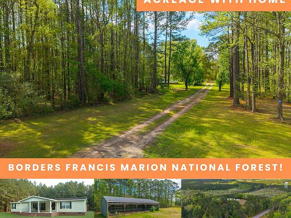 This expansive property, encompassing approximately 10 acres between 2 parcels, offers unparalleled access to the vast Francis Marion National Forest, creating a true haven for outdoor pursuits. Imagine stepping directly into nature's playground, where hunting adventures await just beyond your property line. This is the perfect setting to pursue your passion for the outdoors and enjoy the abundant wildlife the area offers.For the equestrian, this property is what you need to get rid of the expense of boarding. With abundant cleared space, you have the ideal canvas to establish pastures for your horses, giving them ample room to graze and roam.This unique property provides exceptional flexibility and potential. One parcel features a well-maintained, comfortable manufactured home spanning 1620 sq ft with 3 bedrooms and 2 bathrooms. Relax and take in the natural beauty from the welcoming front porch, the back deck, or the covered back porch. Inside, the home offers a cozy atmosphere with an electric fireplace, creating a warm ambiance during cooler months. Enjoy the durable and attractive wood floors and easy-to-clean tile kitchen and dining areas. Convenience is key with walk-in closets in every bedroom, and the main bathroom features a luxurious garden tub and shower for unwinding after a day outdoors. For those who need dedicated space for hobbies, crafts, or even a home-based business, a spacious workshop with an air conditioning unit is included. The home is currently connected to city water but also has a working well on the property. The second parcel is a remarkable added value, offering immense potential. It boasts an installed additional septic system, providing the opportunity to add another home for rental income, to accommodate extended family, or any purpose you desire. This parcel also features a massive 40x80, 5-bay shed, a highly versatile structure that could easily be converted into a barn for your horses, a spacious garage, or a workshop - allowing you to tailor the space to your specific needs. Best of all, you can enjoy the peace of mind that comes with knowing there's no need to worry about neighbors encroaching on your space, offering unparalleled privacy and tranquility. Whether you're a devoted hunter, an equestrian, seeking a family compound, or simply desire a secluded retreat where you can connect with nature, 704 Feathers Lane offers an exceptional lifestyle of privacy, convenience, and opportunity. Don't miss this incredible chance to own your piece of paradise in Jamestown