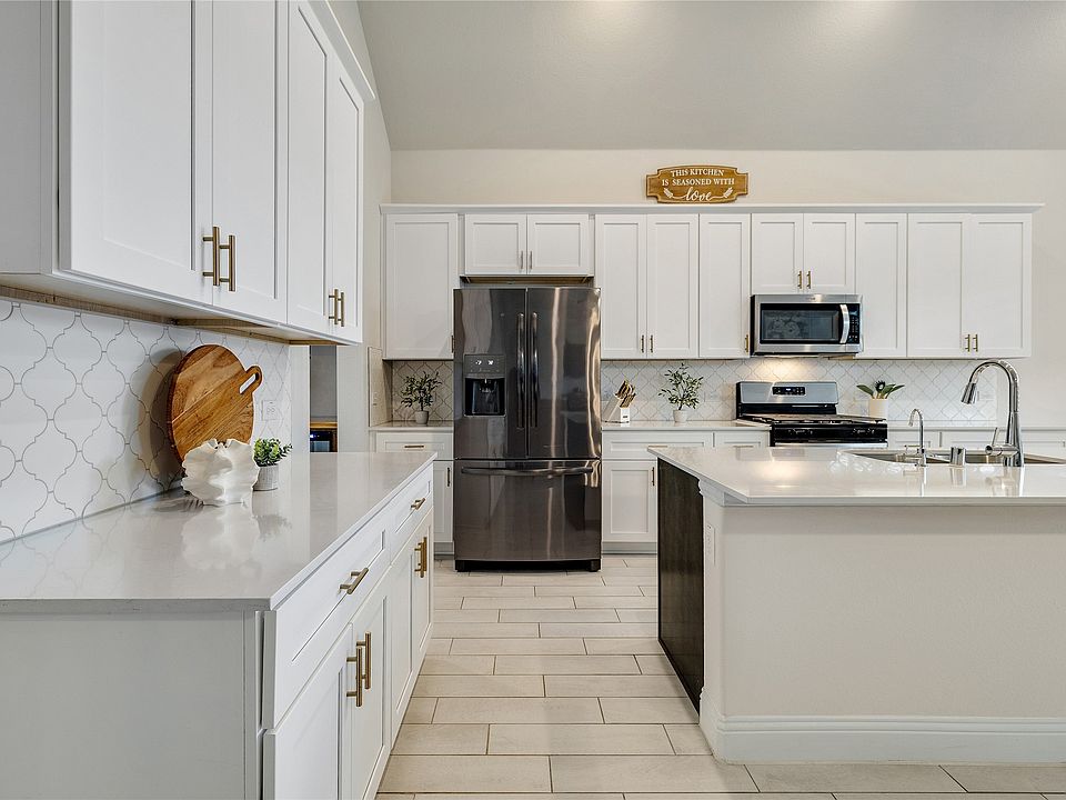 $10,000 BUYER INCENTIVE! OVERSIZED LOT, TWO BEDROOMS DOWN, MCKINNEY ISD! Take advantage of a generous $10,000 buyer incentive with an acceptable offer on this like-new 2022-built home in Celina’s coveted Venetian at Weston, a master-planned community set to offer future resort-style amenities including a lagoon, waterpark, and year-round activities. Situated on an oversized lot with an extended driveway and striking white brick exterior, this meticulously maintained home blends modern sophistication with functional design. The open-concept layout, enhanced by extensive builder upgrades, creates a seamless flow between the kitchen, dining, and living areas, all bathed in natural light. A gas fireplace anchors the main living space, framed by a wall of windows that invite the outdoors in. Perfect for multigenerational living or hosting guests, the main level features the luxurious primary suite and a secondary bedroom with full bath. The chef-inspired kitchen boasts a sprawling quartz island, stainless steel appliances including a gas range, sleek cabinetry, and a walk-in pantry. A stylish butler’s pantry with custom natural oak countertop and open shelving connects effortlessly to the formal dining room. The primary suite is a serene retreat with bay windows, dual quartz vanities, an upgraded walk-in shower, soaking tub, and a spacious walk-in closet. Upstairs, three additional bedrooms, two full baths, a large game room, and a media room wired for surround sound provide ample space for family and entertaining. Step outside to the expansive backyard with covered patio and lush green space, ideal for relaxation or gatherings. Additional upgrades include upgraded laundry, quartz counters in all baths, wood-look tile flooring, newly replaced fence, French drains, and a 220V garage outlet perfect for EV charging or workshop use. This home combines modern luxury, thoughtful design, and functional living in one of Celina’s most desirable communities.