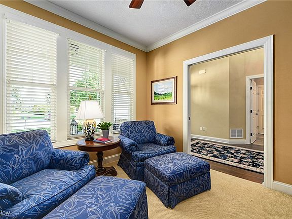 Spectacular detached cluster in sought after Legacy Pointe. Open floor plan concept with incredible golf course views and a perfect balance of impressive architecture on the outside with warmth and character on the inside. Entering the 2-story foyer, you'll notice the quantity of upgrades and quality throughout. Be wowed by the rich hardwood floors, granite, upgraded lighting and an abundance of natural light streaming in from the custom wall of windows. The library offers crown molding and a pocket door for extra privacy. The powder room with stone tile floors offers a furniture style custom vanity and mirror. Enjoy entertaining in the great room with volume ceiling, floor to ceiling impressive stone gas fireplace and hardwood floors. The first-floor master suite with tray ceiling offers his and hers walk-in closets with custom shelving. The master bath has a spacious tile shower, tile floors, his and hers vanity with granite, and linen cabinet. The gourmet kitchen boasts a breakfast bar, island, stainless appliances, stone backsplash, can lights, cabinet crown molding, and water purifier. Also enjoy a large walk-in pantry with extra storage closet, plus a window seat. The dinette area with sliders, opens to an oversized covered paver patio overlooking hole 16 of the Legacy Golf course. The second floor offers 2 generous bedrooms, full bath with custom walk-in tub, an office/craft room with built in desk and bookcases. Another bonus room offers loads of storage or create your own flex space. The large laundry/mud room opens to the garage with nature stone floors and a generous amount of built in storage cabinets. The extra refrigerator and work bench stay. Enjoy the Legacy amenities which includes public golf, pool, tennis, pickleball, fitness center and gazebo for neighborhood get togethers. Don't miss this rare opportunity to purchase your dream home in a beautiful and gated development.