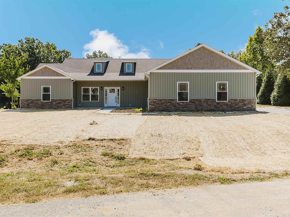 Stunning New Construction with Waterfront in Carterville! Step into this beautifully crafted, brand-new home and instantly fall in love with the serene water views framed by the large back windows. The open-concept layout features vaulted ceilings and a seamless flow that enhances both everyday living and entertaining. The heart of the home boasts rich wood-tone cabinetry, a striking black work island, a convenient coffee bar, and a spacious butler’s pantry — a dream for any home chef. Enjoy durable hard-surface countertops and new stainless steel appliances and beautiful tile backsplash. This split floor plan offers privacy and functionality. The large primary suite includes tray ceilings, a spa-like bathroom with dual vanities, a gorgeous tiled shower, and a roomy walk-in closet. An adjacent flex room is perfect as an office, nursery, or cozy den. On the opposite side of the home, you'll find two generously sized bedrooms connected by a Jack-and-Jill bathroom — ideal for family or guests. Start your mornings on the covered back porch, sipping coffee and soaking in tranquil water views. A spacious 3-car garage provides ample storage, with plenty of room for vehicles, tools, and even a storm shelter plus there is attic storage. The Seller also added a 100 amp service for your future dock, pool or even a hot tub. Whatever your heart desires. Don't miss this rare opportunity to own a stylish and functional waterfront retreat in the heart of Carterville!