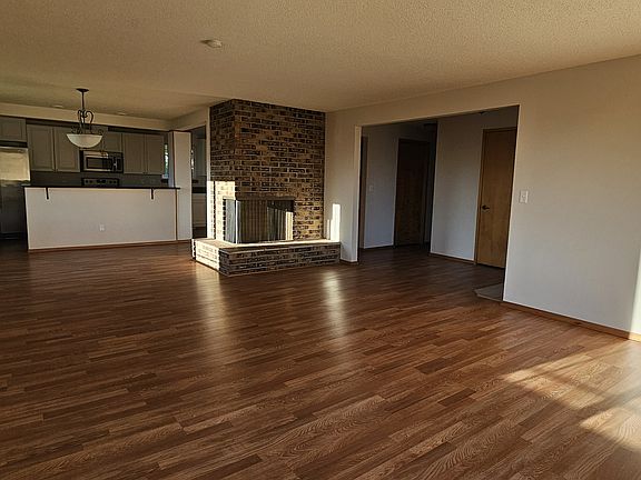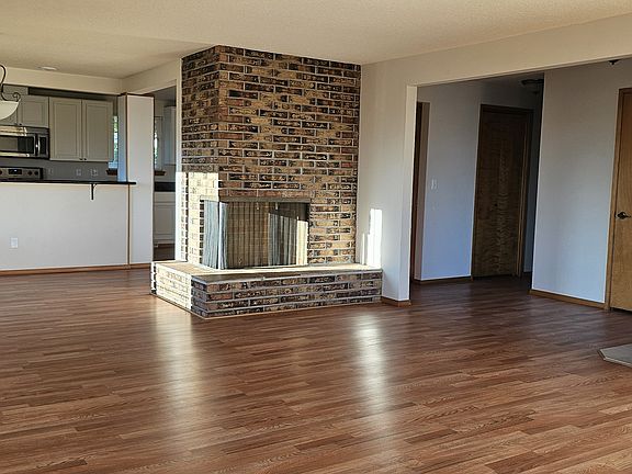 4 Bedrooms (2 upstairs & 2 down), 3 Bathrooms, 1 Utility Room with washer and dryer hook up, Living room in upper level, Family Room and Office in lower level. Both areas have nonworking fireplaces, Propane heat, 2 car garage (no automatic garage doors), back deck, Large yard, underground sprinklers, and beautiful view. New flooring downstairs and new carpet on stairs.