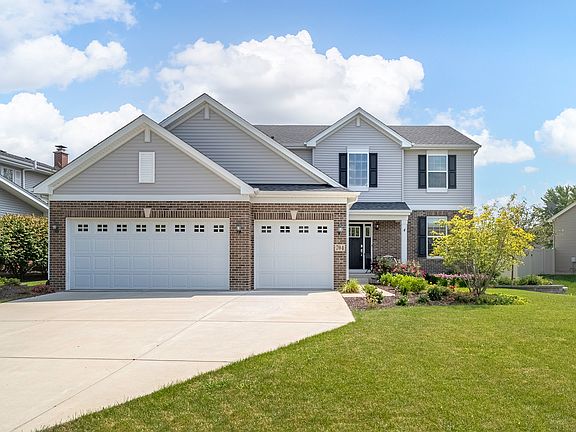 Exquisite 3 Bed 2.5 Bath Home with 3 CAR GARAGE in Minooka! Stunning Two Story Entry with Beautiful Oak Banister and Decorative Spindles! OPEN FLOOR PLAN with Large Kitchen, White QUARTZ Counters, Stainless Steel Appliances, Island and 42" Radford Flagstone cabinetry. Luxury Vinyl Plank Entry, Kitchen and Family Room. Formal Living & Dining Rooms. Main Floor STUDY perfect for Home Office or Related Living/4th Bedroom! Primary Suite boasts WALK IN Closet, Ceramic Tiled WALK IN SHOWER & comfort height Double Bowl QUARTZ Vanity. 2 additional Bedrooms, Loft & FULL Bath. Maintenance free Brick & Vinyl siding exterior. Professionally Landscaped front & back with Brick Paver Patio and Firepit!! NEW Sump Pump. Close to Downtown Minooka Dining, Shops, Parks and Trails. All Minooka Schools.