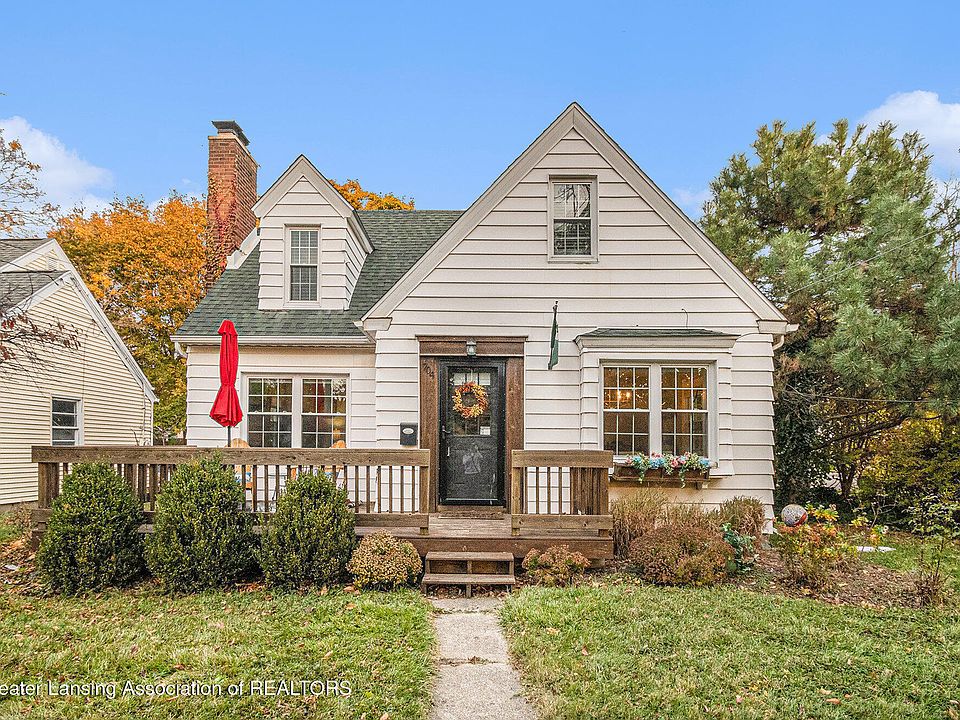 Step into timeless charm with this beautifully maintained 1940s home, offering the perfect blend of vintage detail and thoughtful updates. Gleaming hardwood floors flow through the main level, where you'll find a cozy living room with a welcoming fireplace and a spacious dining room highlighted by a pretty, statement light fixture — ideal for entertaining or intimate dinners. The main-floor bedroom provides wonderful flexibility, perfect for a home office or guest space. Upstairs, the large primary bedroom impresses with three closets and a gorgeous built-in dresser, while the second upstairs bedroom offers a generous layout and a walk-in closet. The finished basement adds even more living space, complete with a cool retro glass block wet bar — a nod to the home's mid-century character Additional conveniences include a laundry chute, updated electrical outlets, newer windows, a brand-new stove, a 2024 hot water heater, and custom cellular shades. The mounted living room TV and washer/dryer stay with the home, making this truly move-in ready.