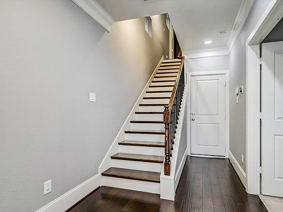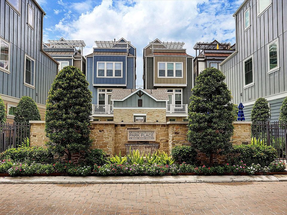 If you're looking for the perfect location to enjoy all of the amenities available in The Heights, then your search has ended. This gorgeous home is located right off of the hike-and-bike trail, and across from the M-K-T Development featuring restaurants, bars, and retail spaces. This is a gated enclave built by David Weekley Homes and also features a community pool. The home itself has a small gated & turfed front yard. Step inside to a private secondary BR or home office with en-suite bathroom. The 2nd floor is entirely kitchen, dining & living space, which makes it a perfect spot for entertaining family & friends. Wood floors flow throughout the 2nd floor and stairs, while the bedrooms feature carpet. Recent paint and custom shutters are a few of the updates to this home. Primary suite has double closets, soaking tub, oversized shower, and vaulted ceilings. Laundry is on the 3rd floor with the primary and secondary bedrooms. The refrigerator, washer/dryer are included.