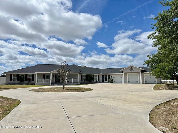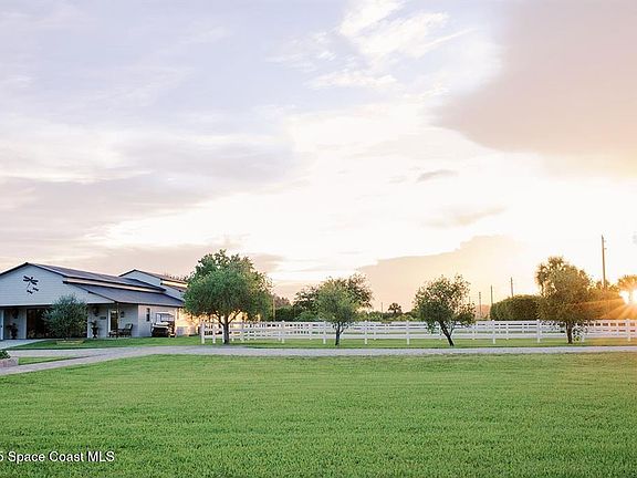 Discover the ultimate lifestyle property in Palm Bay—two adjoining parcels offered together for a combined 11± acres of opportunity. This rare combination of a turnkey event venue and a stunning single-family home creates the perfect work-life balance. The 4-bedroom, 3-bath, 2,793 sq ft residence features an open-concept split floor plan with soaring ceilings and two master suites. At its heart is a gourmet kitchen with custom cabinetry, abundant storage, and quality finishes. Additional highlights include two guest bedrooms, an office/den, and a screened, heated pool and spa for year-round enjoyment. Next door is where happily-ever-afters begin—your turnkey wedding and event venue, brimming with potential. This fully operational business boasts confirmed bookings through 2027 and a beautifully renovated 5,000+ sq ft barn with Bride & Groom suites, office, pavilion, terrace, and both developed and cleared acreage for expansion.
