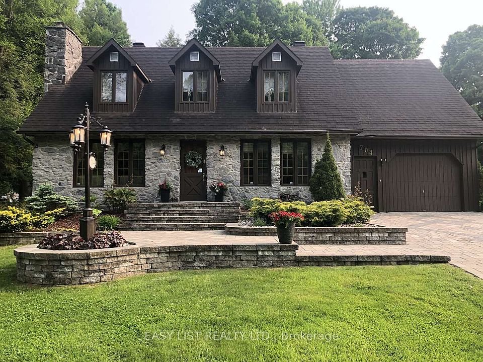For more info on this property, please click the Brochure button. This charming custom-built Canadiana-style home offers peaceful country living on a beautifully treed, low-maintenance half-acre lot, with no front neighbours and just 10 minutes from all essential amenities and the hospital. The home features a freshly stained (2024) stone facade and board-and-batten wood siding. Elegant stonework flows from the driveway to the front entrance and into the backyard patio, which includes a fire pit, hot tub hookup, and natural gas line for a BBQ. Mature perennial gardens surround the home, adding colour and charm year-round. Inside, rich hardwood floors span the main and upper levels. The living room features a cozy wood-burning fireplace and opens into the dining area. A beautiful stone archway connects the dining space to the kitchen, which offers granite countertops and ample cabinet space. At the rear of the home, the sun-filled solarium provides a peaceful retreat with large windows overlooking the private yard and a natural gas fireplace for comfort. A den with Murphy bed sits adjacent to a full bathroom with a walk-in tub, making the main level ideal for guests or multi-generational living. Upstairs, a lovely hardwood staircase leads to three spacious bedrooms, including a generous primary suite with a walk-in closet. A 5-piece bathroom with in-suite laundry completes the upper floor. The finished basement features a family room with electric fireplace and surround sound, a bathroom with shower, cold storage, and a cedar closet. The attached single-car garage offers direct home access. Inclusions: Kitchen and laundry appliances, Murphy bed, drapes, and blinds. Extras: Bell Fibe, Generac generator, central vacuum, top-tier water system (2022), furnace (2021), AC, hot water tank (2021), well pump (2023), backup sump (2024), vinyl flooring (2023). A rare blend of rural charm and modern convenience.