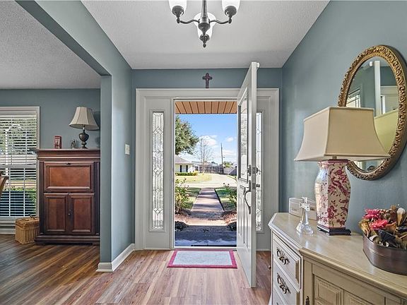 Step into this well maintained home and embrace the warmth and welcome. The wonderful picture window frames the view of the inviting patio and backyard. Appreciate the spacious bedrooms and oversized closets. The comfort, style and space of the kitchen is a must see featuring a double door closet for the extra sets of special occassion and oversized items. When the home was remodeld the formal living and dining was transformed into a smaller dining room with a cased opening accessed through double glass doors into the living room. The other portion was walled off for the perfect home office. Such a great use of the space and a must see to appreciate. Relax on the oversized patio and enjoy the wonder of the backyard which also features a Cajun Cabin. The cabin provides so many options. It is wired and also has plumbing in place to add a bathroom. The attic area which is accessed from the outside through an oversized door provides excess storage. The Cajun Cabin is 253 sq ft with an inviting front porch. Bring your imagination and create your own special area. The 2 car carport welcomes you in and has two additional storage rooms adding even more storage. This immaculate home awaits you today. Schedule a showing and see everything this home has to offer. Comfort, space, warmth and more.