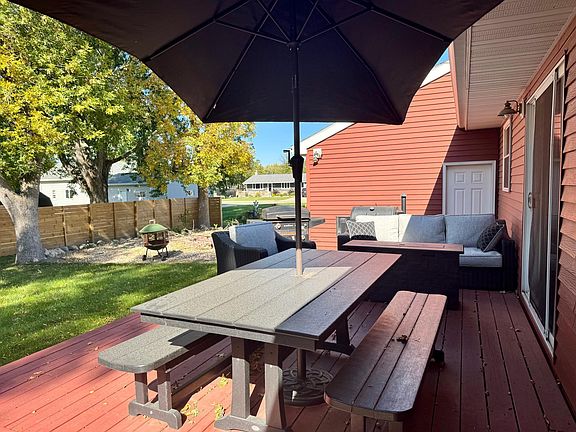 Fenced in yardOpen floor planFinished basementModern kitchenTwo main floor bedroomsLarge family roomPrivate deck