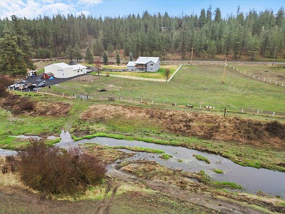 Meticulously maintained 3 bed, 2.5 bath home on a sprawling 6.23-acre paradise. Spanning 2796 sqft, this residence is complemented by a massive 2160 sqft shop with an additional lean-to, ideal for storing boats, motorhomes, & more. Enjoy panoramic views from the back deck & a beautifully irrigated yard. Unique to this property is the serene, fishable Deep Creek, providing a picturesque water feature & year-round enjoyment. Just 10 min from Airway Heights and 20 min from Spokane, this private haven offers tranquility alongside convenience. Wildlife enthusiasts will relish constant visits from moose, fox, deer, & more. An exceptional property anchored in natural beauty.
