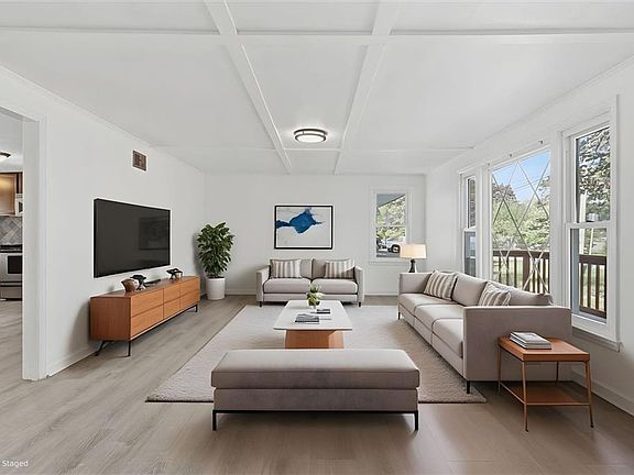 Everything is on one convenient level, featuring fresh interior paint throughout, stylish new light fixtures, new flooring, and a modern, move-in-ready feel. The bright and open layout offers comfortable living with easy flow from the living room to the kitchen.