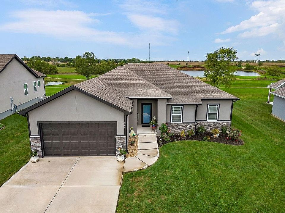 Welcome to 704 Salem Road — a stunning, like-new home overlooking the 18th hole of Lawson Golf Course with peaceful lake views. Built just three years ago, this home combines modern design with thoughtful details and high-end finishes throughout. Inside, you’ll find LVP flooring that runs seamlessly through the main living areas. The open-concept layout features vaulted ceilings in the living room, a cozy fireplace, and panoramic views of the lake and golf course. The spacious kitchen offers an island with a breakfast bar, stainless steel appliances, a walk-in pantry, and plenty of room to entertain. This leads out to a covered deck and an expansive, newly added paver patio, offering a perfect outdoor retreat to relax or entertain as golfers make their way to the final green. A convenient mudroom with a drop zone connects to the garage, which boasts high ceilings, while a front office adds flexible workspace. The master suite is located off the living room and showcases more beautiful views, along with a spa-like bath featuring his-and-hers vanities, a jetted tub, walk-in shower, and generous walk-in closet. Two additional bedrooms include vaulted ceilings and share a full bath. Downstairs, the impressive golf simulator room — a $12K setup that stays with the property — provides year-round enjoyment with extra space for a game table or lounge area. With modern finishes, golf cart access, and an unbeatable setting along the 18th hole, this home at 704 Salem Road delivers style, comfort, and everyday enjoyment in one exceptional package.