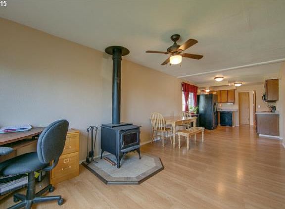 Move right in to your new home. Spacious 3 bedroom home has family & dining room combo that opens to the kitchen with laminate floors, certified wood stove, includes fridge. Fenced yard with berries-blue, straw & rasp and a Pear tree, too! Oversized 2-car garage w/utility space and storage.